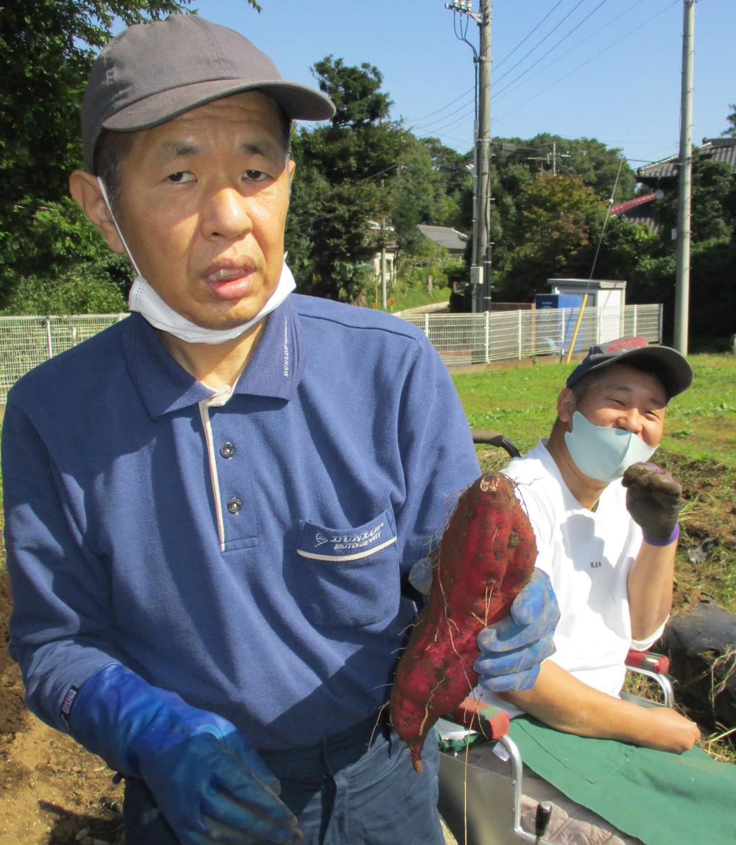 春に植えたサツマイモの蔓が、たわわに実を付けました!農園芸班を中心に芋ほりをしました。大きな芋が収穫でき利用者も満面の笑みです!