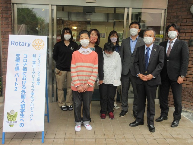 新千葉ロータリークラブ様が取り組んでいる「コロナ禍における外国人留学生への支援と絆パート2」事業において、製菓班の焼菓子に、手工芸班のメッセージカードを添えて納品しました。