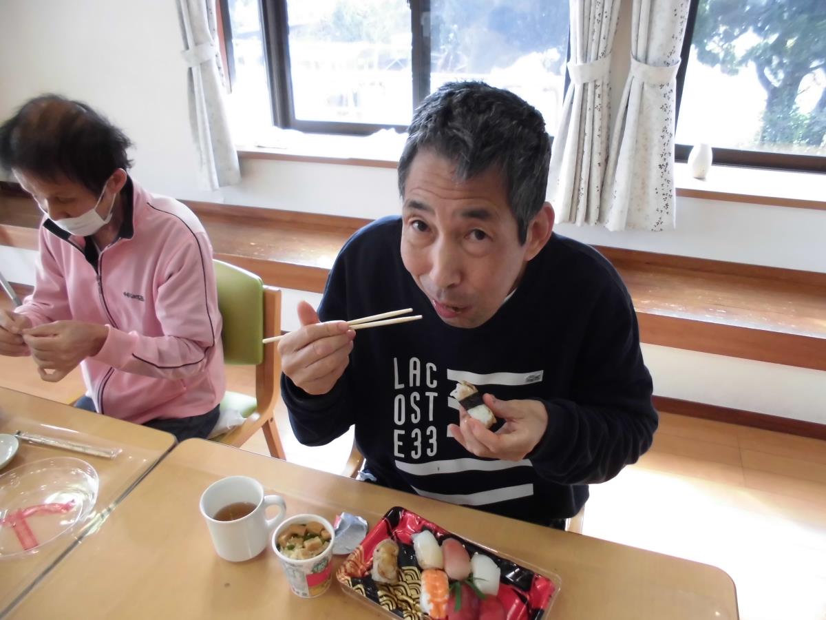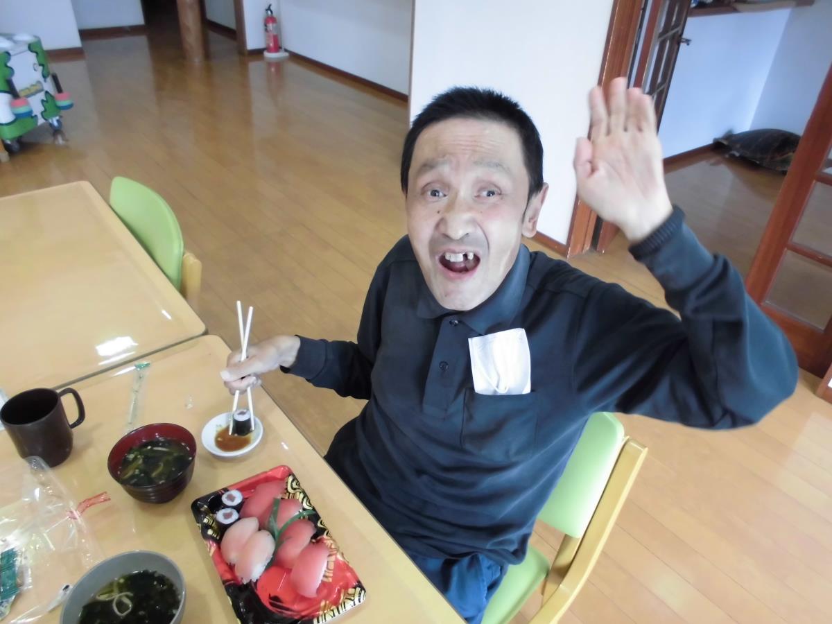 「寿司の日」に合わせて、皆で握り寿司を食べました。